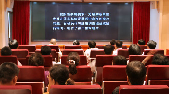 这是省农业厅第二次组织全厅公务员和厅属事业单位全体干部观看机关作风建设暗访专题片。厅领导不但率先观看专题片,还专门召集相关处室和单位负责同志进行座谈,征求对全厅机关作风建设工作方面的意见,认真研究加强机关作风建设的问题,以努力打造一支依法行政、热情服务、廉洁自律、勤奋高效的公务员队伍。