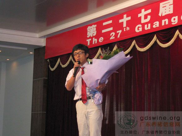广东省畜牧技术推广总站站长、广东省养猪行业协会会长吴秋豪为“超级神探”一等奖获得者颁奖