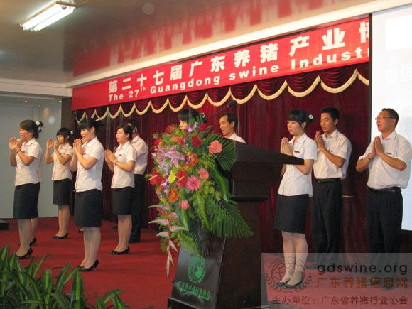 出席大会的嘉宾在主持人的提议下现场学习哑语感恩的心向全省养猪人致意
