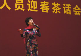 与会者自编文艺节目为茶话会助兴,祝愿老干部们快乐健康长寿。