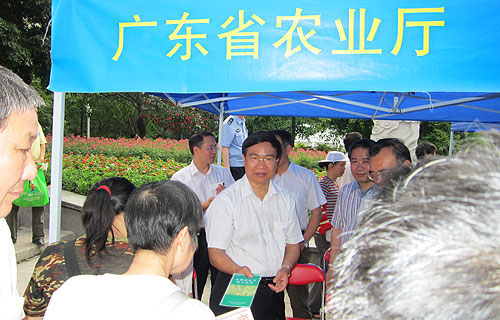 刘昆与省减灾委副主任、省政府副秘书长颜学亮、广州市副市长陈国一同推动启动杆,宣布“防灾减灾日”活动周正式启动并向社区群众代表发放了家用应急包。省农业厅党组成员、巡视员陈福林同志参加了启动仪式。农业厅在现场设点开展防灾减灾知识咨询活动,详细向群众讲解重大动物疫病防治和农业灾害防御知识,并向现场市民发放了数千份防灾减灾科普知识资料和VCD光盘。
