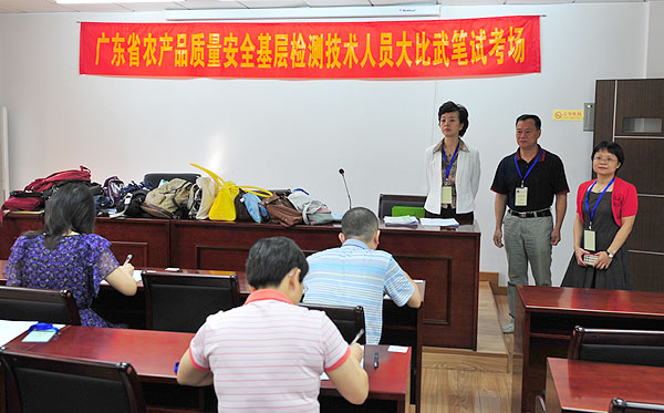 广东省农产品质量安全检测技术人员大比武笔试现场。