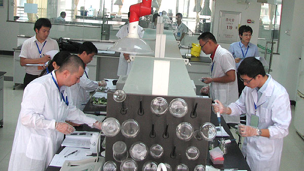 广东省农产品质量安全检测技术人员大比武检测比赛现场。