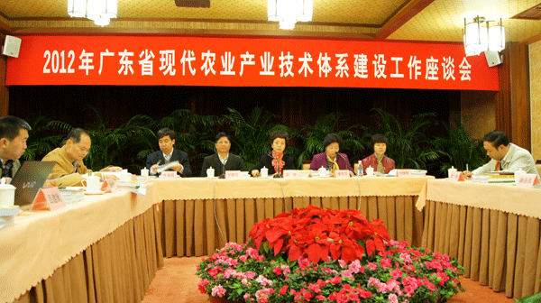 座谈会上,5个产业创新团队首席专家分别汇报了2012年主要工作成效;与会专家和领导分别就深入学习贯彻党的十八大精神,如何进一步强化农业科技创新引领广东现代农业发展,如何有效加强省市县农业科技创新与推广两大体系有效衔等问题进行了座谈交流。程萍副厅长就进一步谋划广东农业科教工作,切实加强现代农业产业技术体系创新团队建设工作提出了四点要求:一是要增强活力、创新机制;二是要坚持基础、服务产业;三是要突出示范、打造亮点;四是要强化管理、加大宣传。