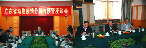 1月18日上午,广东省动物卫生监督总所(省动物疫病预防控制中心)在广州召开2012年度广东省动物疫情分析与预警座谈会,华南农业大学、省农科院动物卫生研究所、佛山科学技术学院、广东省出入境检验检疫局、韶关学院等单位的10位动物疫病防控专家,以及广州、河源、惠州、韶关、云浮、肇庆市动物卫生(防疫)监督所,江门、茂名市动物疫病预防控制中心有关领导出席了会议。省动物卫生监督总所屈源泉所长主持了会议,孙彦伟副所长、林乃锋副调研员,以及有关技术骨干参加了座谈会。