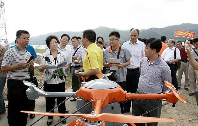 10月22日,由广东省农业厅主办、农业机械化技术推广总站和农业有害生物预警防控中心承办的航空植保机械化技术推广演示会在韶关市曲江区举行。演示会的目的是为了加快推进现代农业装备工程建设,进一步加大新型环保高效型农业机械化技术的推广应用力度。省农业厅潘雪芬副巡视员出席推广演示会并讲话。厅农机化办、全省15个省级农机化示范县农机(农业)局主管农机推广工作领导和农机技术推广站负责人;部分县植保站、统防统治示范作业公司代表;韶关市各县(市、区)农机(农业)局主管农机推广工作领导和农机技术推广站负责人;曲江区农业生产企业、农机(农业)专业合作社、农机(种植)大户、农机手、镇农技(机)站代表和当地农民群众等近300人观看了来自省内外6家企业30余种航空植保机械的现场展演示。