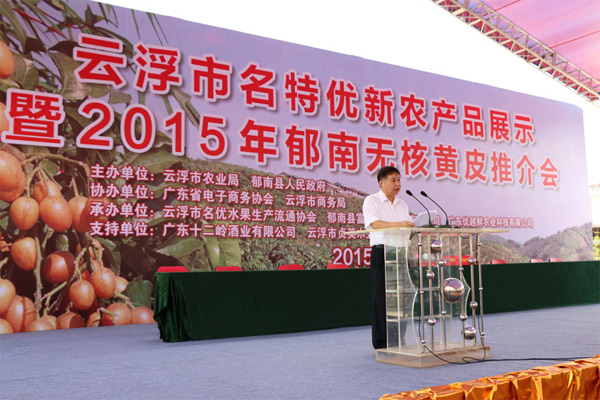 7月31日上午,广东省名特优新农产品云浮现场推介暨2015年郁南无核黄皮推介会开幕,省农业厅陈正辉副巡视员参加活动并讲话,他表示本次活动将对进一步宣传推介郁南无核黄皮等云浮名特优新农产品,和云浮现代农业持续、稳定、健康发展发挥积极促进作用。