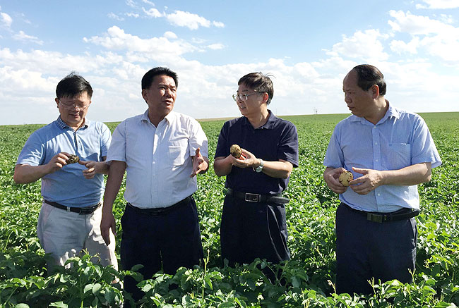 8月7日,陈正辉副巡视员考察了惠东九华农贸有限公司在达茂旗建立的马铃薯脱毒种薯繁育基地。陈正辉副巡视员详细了解了马铃薯品种研发、种薯脱毒、组培繁育及种薯销售情况,指出该公司积极开展马铃薯“北繁南种”,以“公司+基地+农户”的形式发动农民积极开展生产,为广东马铃薯产业发展、带动农民增收致富方面做出了积极的贡献。