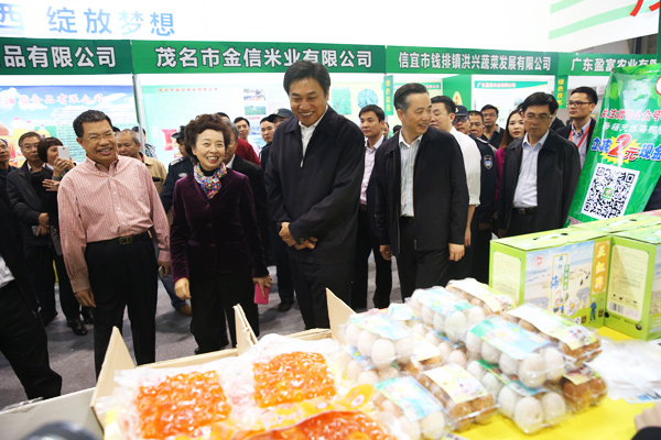 邓海光先后来到省直部门综合成就展示区、农业互联网信息化工程成就展示区、农业科技成果转化展示区、广东名特优新农产品展示区、农业电商展示区、外省农业合作展销区、省直部门展示区、以及省内各市农产品展销区参观,与参展企业、合作社负责人深入交流,详细了解农产品的生产、加工、食品安全、价格以及市场上的销售情况。