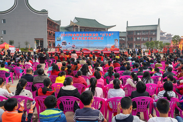 根据中央统一部署,为纪念红军长征胜利80周年,在长征途经的15个省(区、市)同步开展“2017年全国文化科技卫生‘三下乡’集中示范活动”。我省活动由省委宣传部、教育厅、农业厅、科技厅、文化厅、计生委、新闻出版广电局、省科协主办,韶关市委宣传部、南雄市委、市政府承办,12月20日,“2017年全国文化科技卫生‘三下乡’集中示范活动启动仪式”在韶关南雄市珠玑古巷中心广场举行。