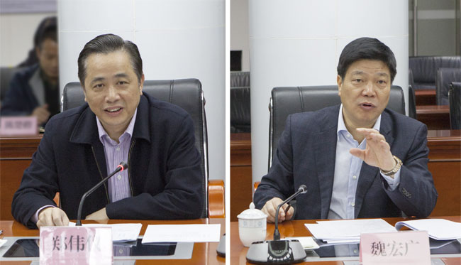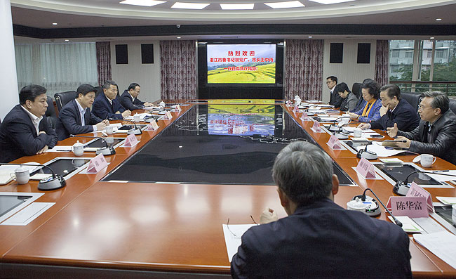 为贯彻落实省委经济工作会议和省“两会”精神,近日,湛江市委书记魏宏广、市长王中丙一行到省农业厅与郑伟仪厅长及班子成员、相关处室单位主要负责人进行座谈交流。双方就落实雷州半岛现代农业发展规划,加快推进现代农业建设等相关工作交换了意见,达成了共识。