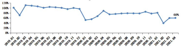 4月大米需求增加,省外入场量和总成交量较上月均增加。据省农业信息监测体系数据,4月大米省外入场量环比增长7%,同比下降31.1%;总成交量环比微增0.8%,同比下降32.2%。4月大米省外入场量定基指数为60%,与上月相比上升4个百分点;总成交量定基指数为60%,与上月持平。