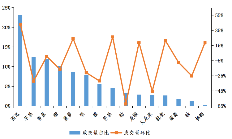 各水果种类成交量占比与环比