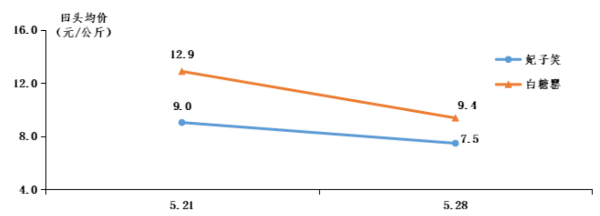 荔枝田头行情良好。据省农业信息监测体系数据,5月荔枝田头均价7.9元/公斤,荔枝批发均价10.9元/公斤,同比下降15.6%;其中妃子笑荔枝田头均价7.5元/公斤,批发均价9.4元/公斤;白糖罂荔枝田头均价9.5元/公斤,批发均价10.0元/公斤。