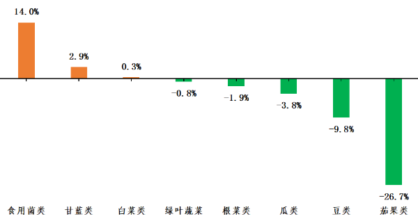 各种类蔬菜交易量环比增减幅