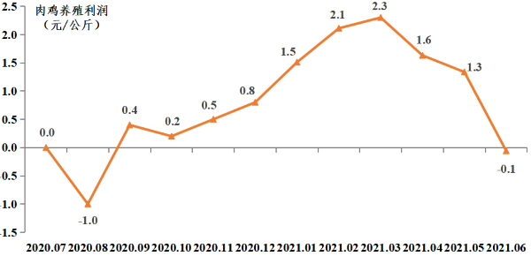 家禽养殖成本上涨,养殖利润下降。因玉米等饲料原料和禽苗价格高涨,养殖成本上涨。据省农业信息监测体系数据,上半年肉鸡养殖成本为28.3元/只,同比增长14.1%,其中饲料成本19.5元/只,同比增长28.0%,鸡苗成本5.1元/只,同比增长44.9%。上半年肉鸡整体养殖利润率为8.9%,同比增长11.3%,但6月已出现养殖亏损。