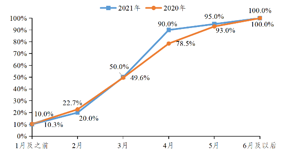 巴厘菠萝产销两旺上市进度加快。2021年受低温和干旱的影响,巴厘菠萝上市时间较往年略有推迟,但由于菠萝营销活动准备充分,且今年品质较好,销售顺畅,整体上市进度较去年加快。今年湛江巴厘菠萝于2月底开始大量上市,到3月底上市进度达到50%,4月底已达90%,较去年同期加快12.5%,到6月底部分尾果陆续上市完毕。