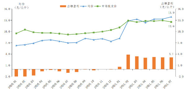 加州鲈鱼出塘量减少。今年早期投苗的加州鲈鱼仍处于生长期,存塘规格以0.3-0.4公斤/尾居多,预计将在9月达到上市规格,因养殖端可供上市加州鲈鱼存塘减少,7月我省加州鲈鱼出塘量环比减少26.4%。