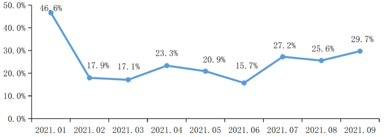 草鱼出塘量增加。9月迎来开学季,水产品团餐需求回升,带动草鱼出塘量增加。据省农业信息监测体系数据,9月我省基地草鱼出塘量环比增加16.1%,出塘量定基指数[ 出塘量定基指数:以该品种2020年第四季度平均出塘量为基期,说明2021年出塘量变化情况。下同。]为29.7%,较8月增加4.1个百分点;高温下鱼生长加速,9月末草鱼存塘量环比增加1.1%。