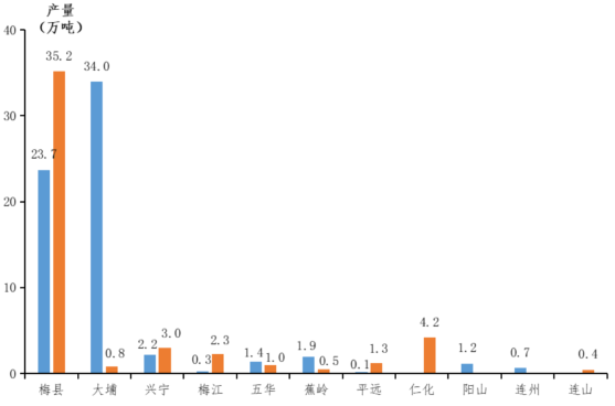 2021年广东柚主产县区预计产量