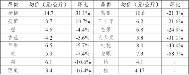 四、水果批发行情下降为主
