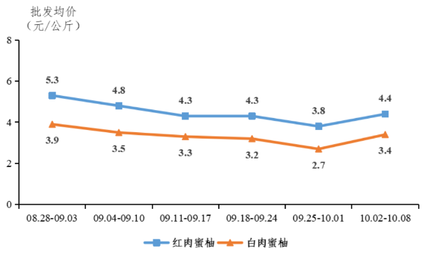 省内批发市场蜜柚价格走势图