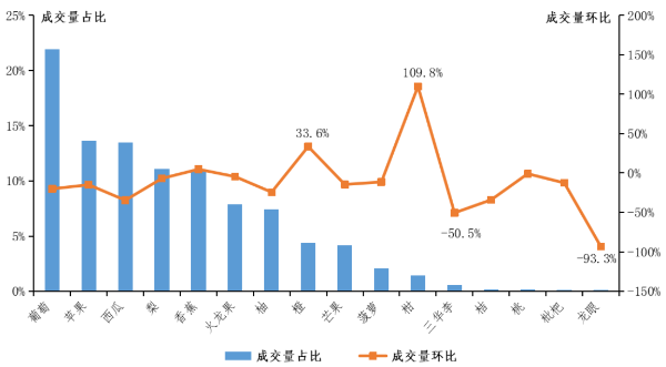各水果种类成交量占比与环比