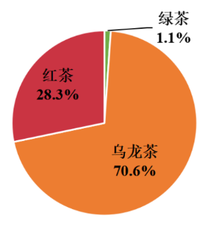 10月粤东、粤北高山地区茶园逐渐开始冬耕休园,茶叶产量总体减少。据省农业信息监测体系数据,茶园基地开采面积占投产面积76.3%,茶青平均亩产量为20.2公斤/亩。初加工环节,绿茶、乌龙茶和红茶茶青制比(茶青重量/毛茶重量)分别为4.4、4.1和4.7,绿茶、乌龙茶和红茶毛茶产量占比分别为16.7%、28.5%和54.8%。精制加工环节,绿茶、乌龙茶和红茶毛茶制率(成品茶重量/毛茶重量)分别为80.0%、95.5%和94.7%,由于乌龙茶订单需求量增加,成品茶生产以乌龙茶为主,占比70.6%。