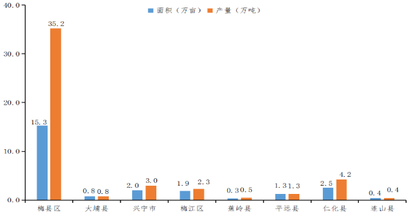 广东主产县(区)沙田柚预计种植面积、产量图
