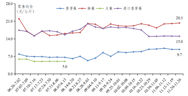 广东主要零售平台香蕉零售均价走势图