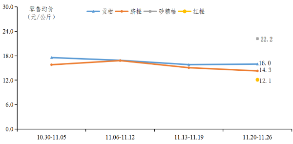 全国主要零售平台柑橘零售均价走势图