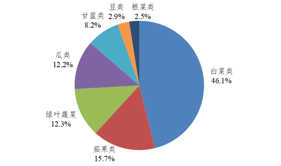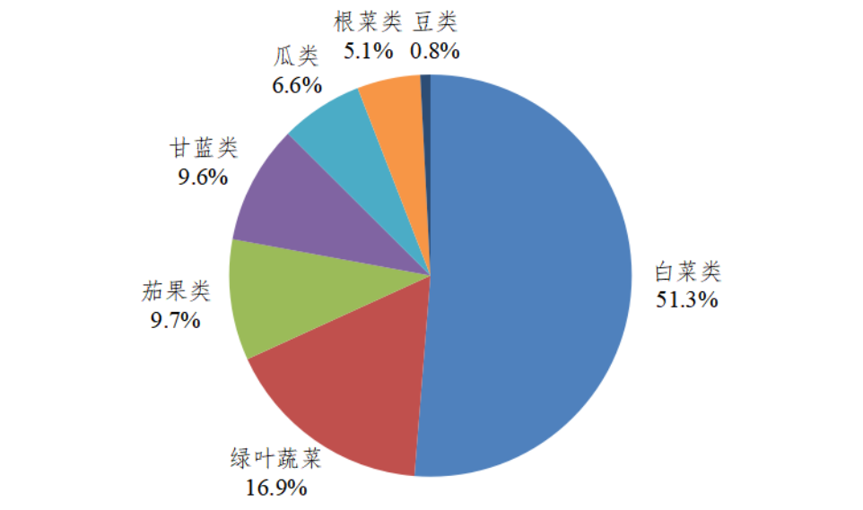 广东规模基地各种类蔬菜在田面积占比图