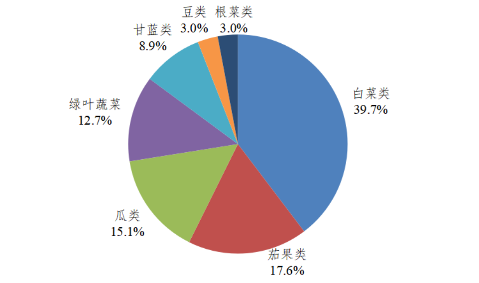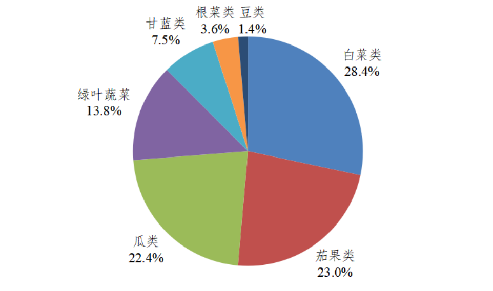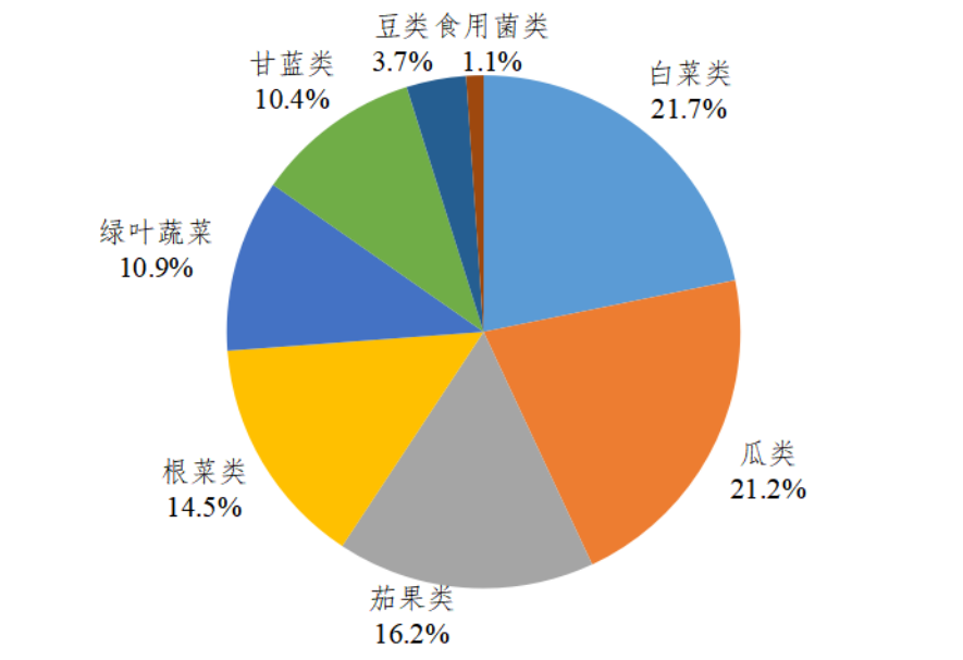 广东规模基地各种类蔬菜产量占比图