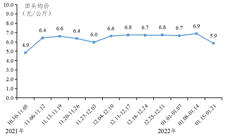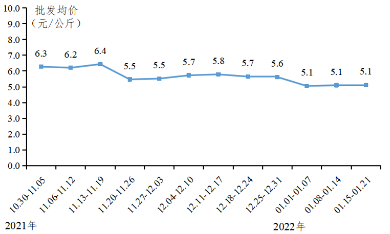 沙田柚上市收尾。1月沙田柚出货顺畅,加之春节前夕为沙田柚的黄金销售期,销售进度加快,1月末沙田柚上市基本结束。据省农业信息监测体系数据,沙田柚整体上市进度约99%,其中梅州产区产量40万吨,已上市约99%,韶关产区产量4.2万吨,已上市100%。