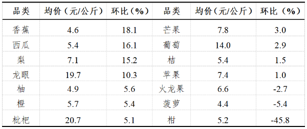 五、柑橘零售行情涨跌互现,沙田柚零售行情上涨,香蕉零售行情上涨,菠萝零售价优