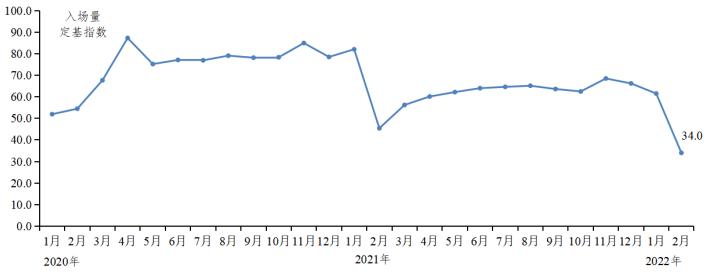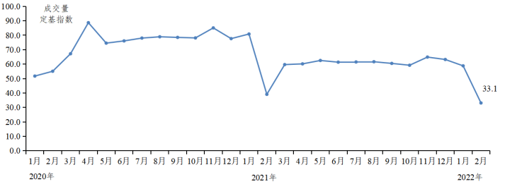 2月逢春节假期,广东主要大米批发市场入场量和成交量环比大幅下降。据省农业信息监测体系数据,2月大米入场量环比减少44.7%,同比减少16.6%;大米成交量环比减少43.7%,同比减少13.3%。2月大米入场量定基指数[ 粮食定基指数:均以该指标2019年全年平均数值为基期水平100。下同。]为34.0,较上月减少27.5;大米交易量定基指数为33.1,较上月减少25.7。