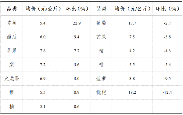广东主要批发市场水果批发均价及环比表