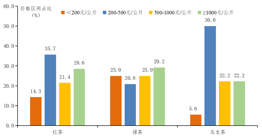 广东规模基地干茶价格区间占比图