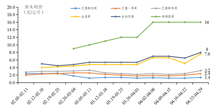 三、田头行情:菠萝田头价格下降,香蕉田头均价上涨