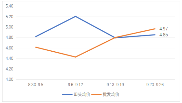9月初受台风“摩羯”影响,我省蔬菜市场供应紧张,蔬菜价格出现上涨,9月中旬天气好转,蔬菜价格开始出现小幅回落,伴随中秋节国庆节的来临,市场需求增加,蔬菜价格再次呈现上涨趋势。