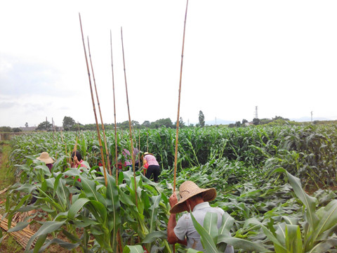 5月6日下午,受强降雨天气影响,阳江市农科所在白沙街道办麻桥村设立的国家玉米区域试验点和展示点受灾严重,原来长势良好的多个玉米新品种的植株基本全部倒伏。