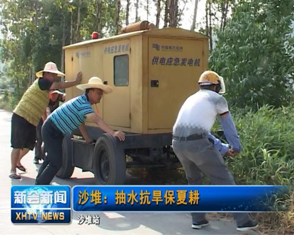 由于受干旱天气影响,江门市新会区沙堆镇沙西村夏耕用水紧缺,该村在农办、供电部门的支持下购置设备,抽水灌溉水稻田,抗旱保夏耕。