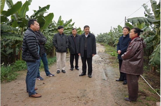 高瑞生副市长一行深入田间地头,实地调研并认真了解两镇区种蕉农户和水产养殖大户应对防御寒潮的情况。在调研期间,高瑞生副市长与农户热情交流,详细了解种养行情,并细心指导种蕉农户做好对粉蕉实行套袋保护、加强水肥管理等防寒措施。他强调,为降低本次寒潮对我市农业造成的影响,各级农业部门要加强对农户的防寒指导,科学、高效、有序地开展防御工作,及早制定防寒抗冻方案,组织落实预防措施,稳定我市农业冬季生产,确保春节节日农产品有效供应。