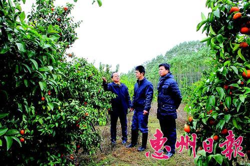 惠州市龙门农技人员指导农户做好柑橘防寒防冻。