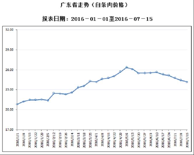 广东省屠宰生猪及肉品价格周报(2016年第29周)
