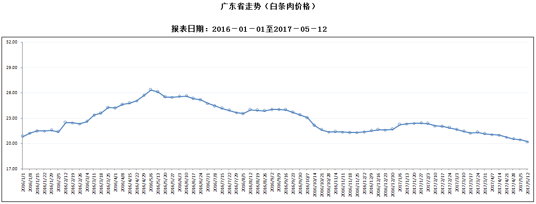 广东省屠宰生猪及肉品价格周报(2017年第19周)