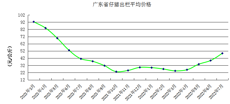 据农业农村部养殖场直联直报信息平台价格监测点数据,2022年7月,我省仔猪出栏平均价格48.74元/公斤,环比上涨25.81%,同比上涨18.39%。
