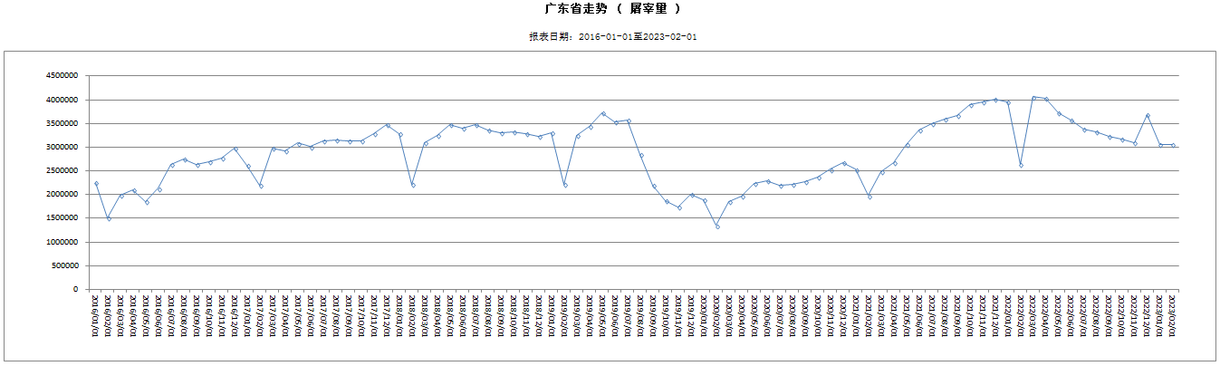 2023年2月广东省屠宰生猪及肉品供应情况
