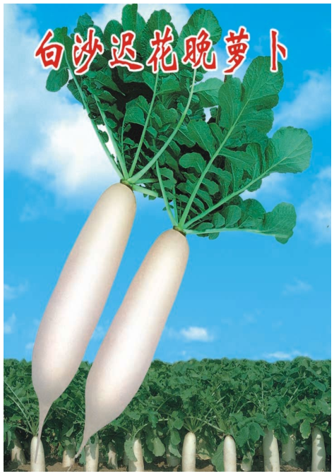 产量表现 :1997 年在本所品比试验中,白沙迟花晚萝卜平均亩产量为 4068 公斤 , 比白沙南畔洲晚萝卜的 2640 公斤增产54.1%;1997 至 1999 年在揭阳、潮州及广州市郊区进行生产试验,以南畔洲晚萝卜作对照,结果白沙迟花晚萝卜平均亩产量为 4381 公斤,比对照种增产 44.1%。