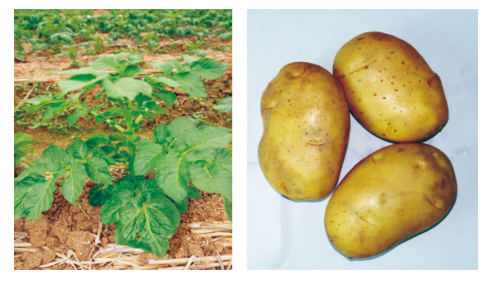特征特性 : “粤引 85-38”: 品种株型直立 ,株高 28 厘米左右,叶片数 16 片左右,叶深绿色,茎绿色,生育期 7582 天;薯形整齐,薯块长椭圆形,黄皮黄肉,表皮光滑,芽眼浅,商品薯率大 80% 以上;干物质含量 17%,淀粉含量 13.0% 左右,还原糖含量 0.22%,维生素 C 含量 18.4 毫克 /100 克鲜重。是目前我省马铃薯产区的当家品种,也是出口创汇的首选品种(主要出口新加坡、马来西亚及港、澳、地区)。